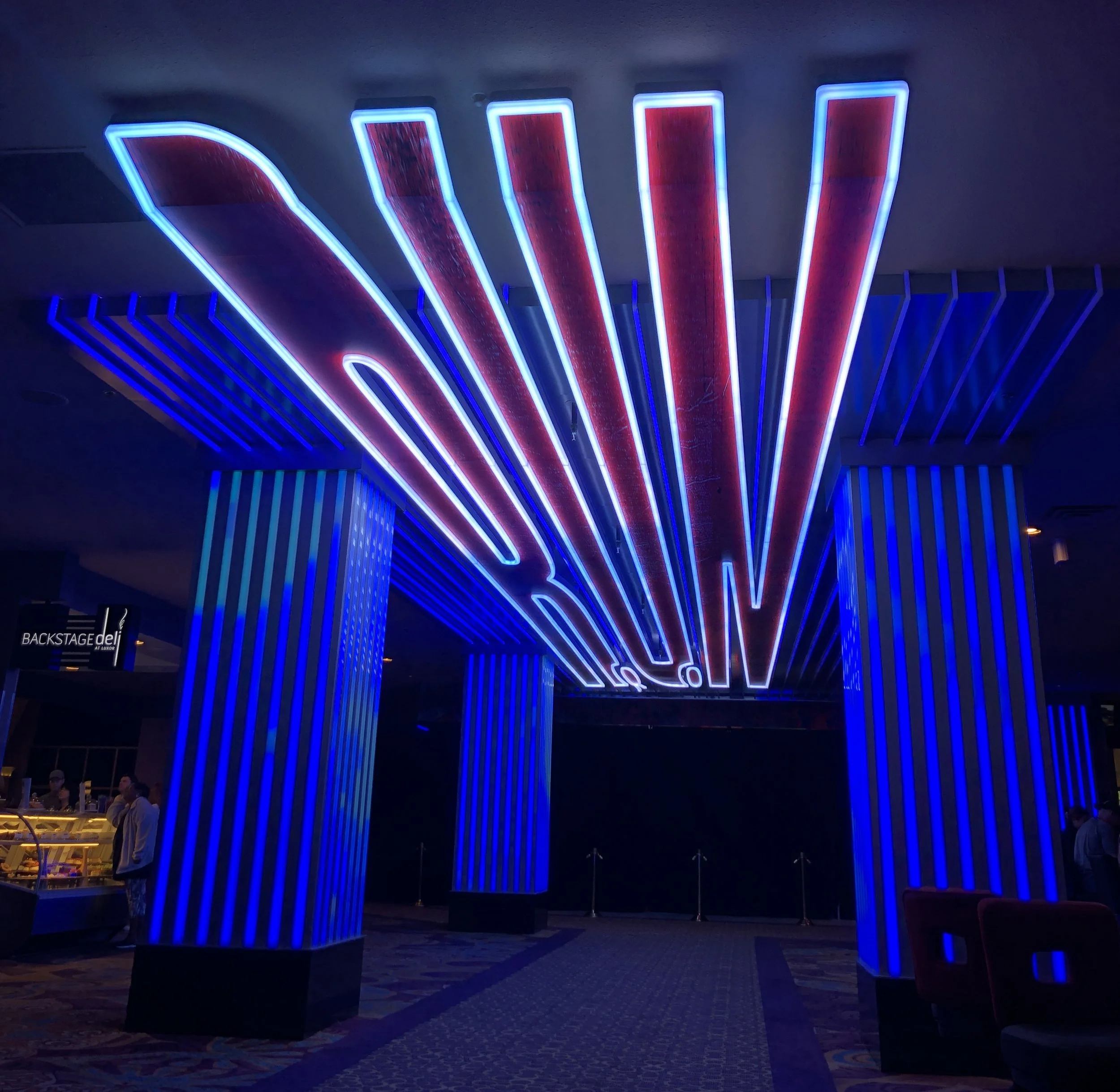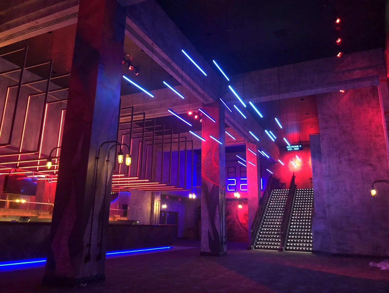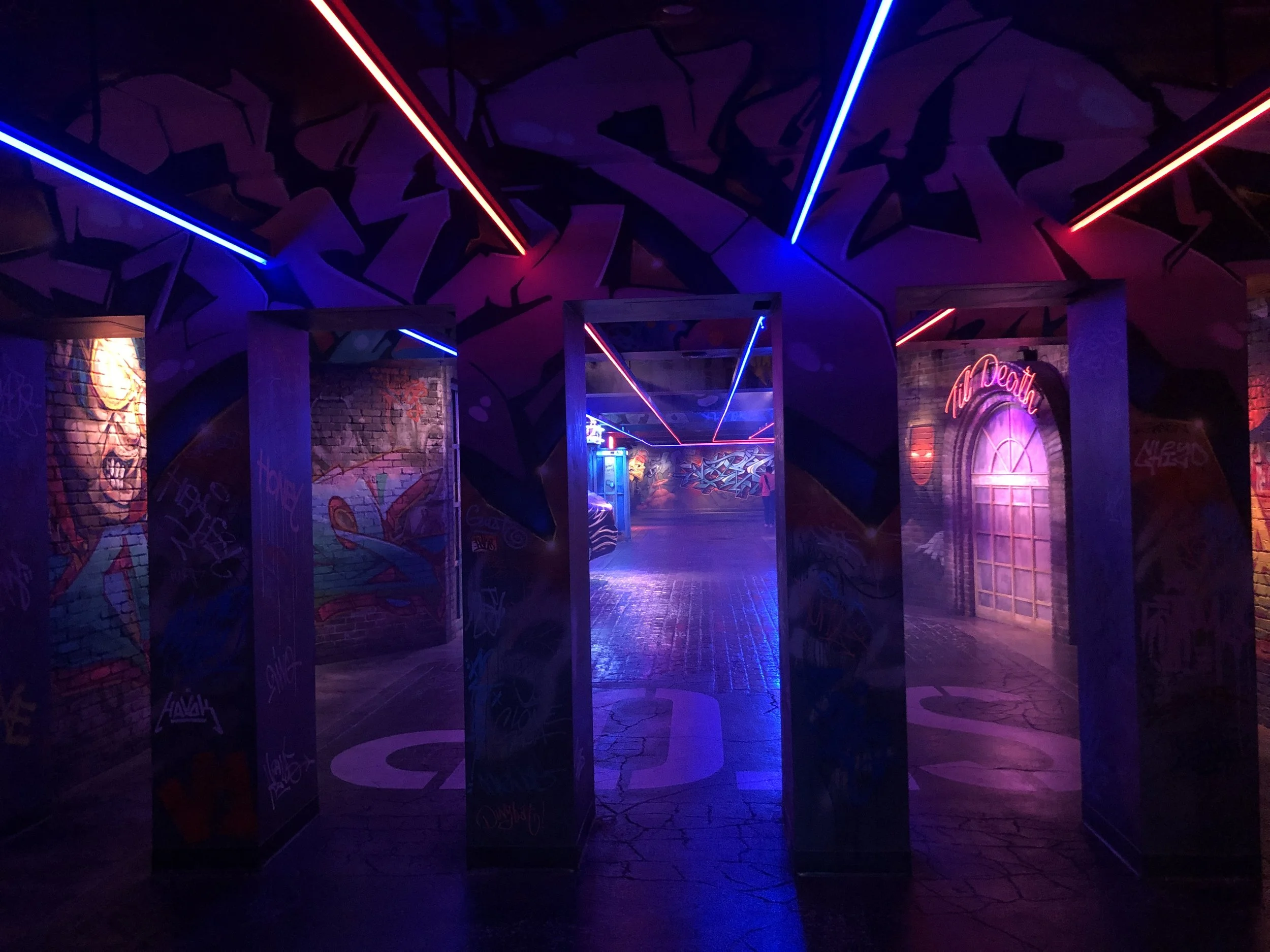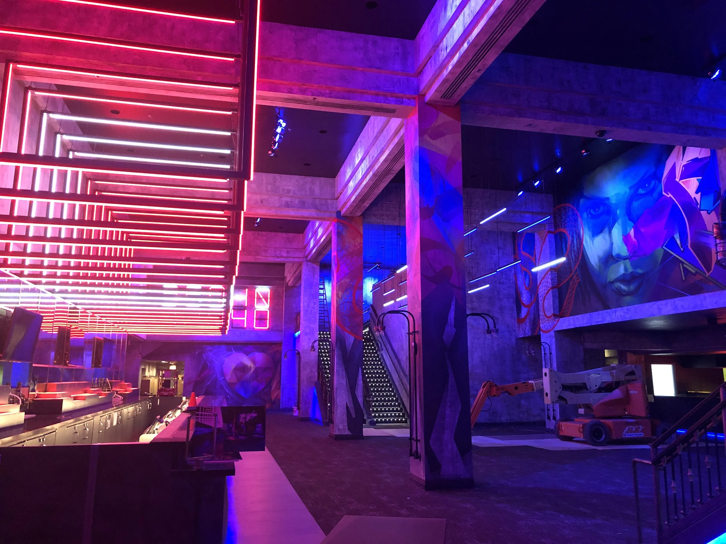 The challenge here was to create an appealing entrance as the Luxor’s ceilings are pretty low, we didn’t have much space to create a huge “wow” effect. So I came up with the idea of installing an anamorphic LED canopy with the show title to catch the attention of the audience from a distance. Once you passed through the canopy, you entered the dark alleyway of underground Vegas. For the opening, I had graffiti artists tagging the walls of they alley live in front of the audience.