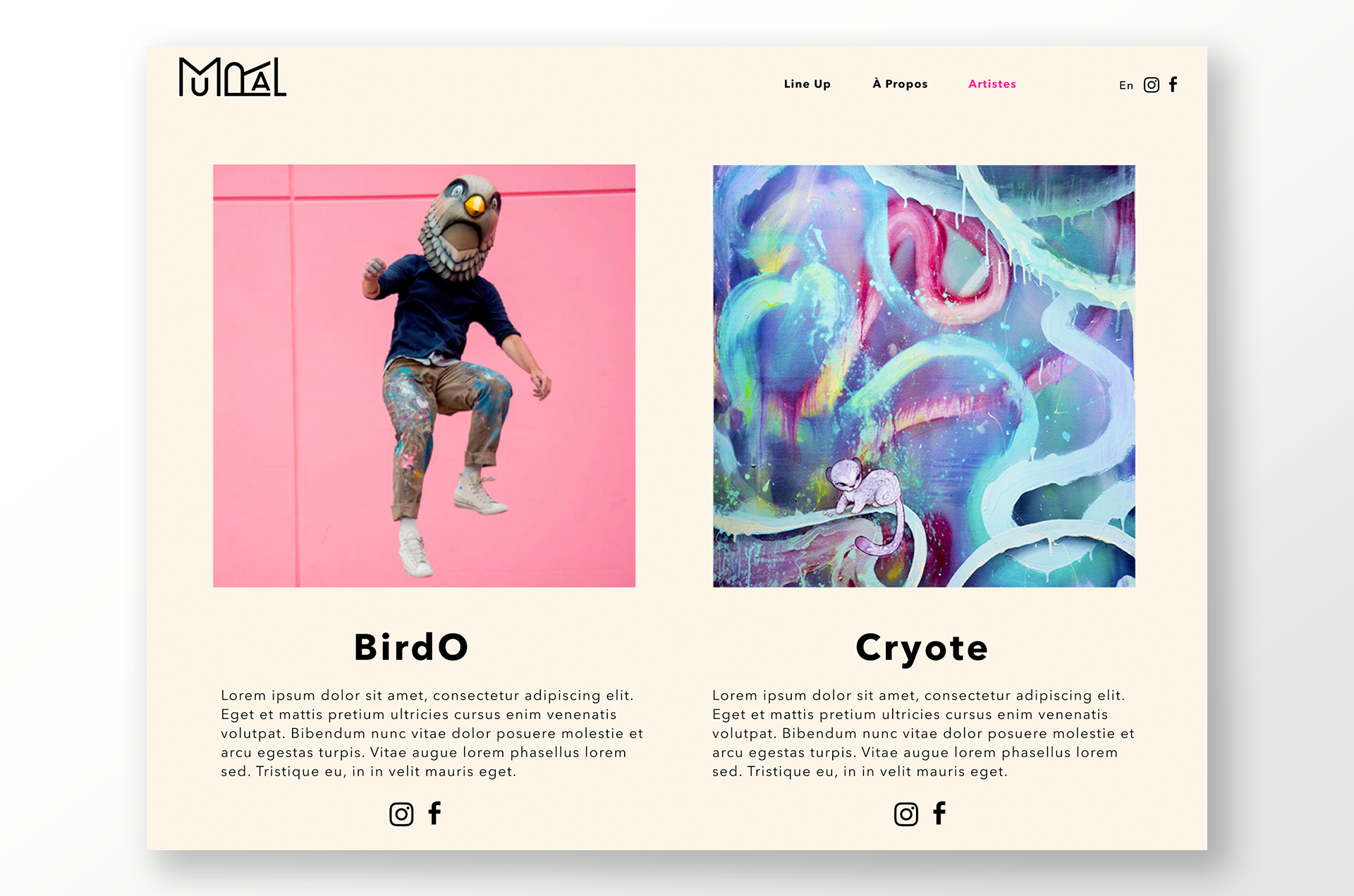 As part of a student project, we were asked to pick a website we thought needed improvement. As a regular at the Mural Festival here in Montreal, I decided to give it a try. I wanted to give it a fresh feel, to let the viewer breathe by using a soft colour palette and bold typography. The main navigation redirects to the different sections of the page, as this was designed as a one pager. After all, it doesn’t need to be more complicated than that.